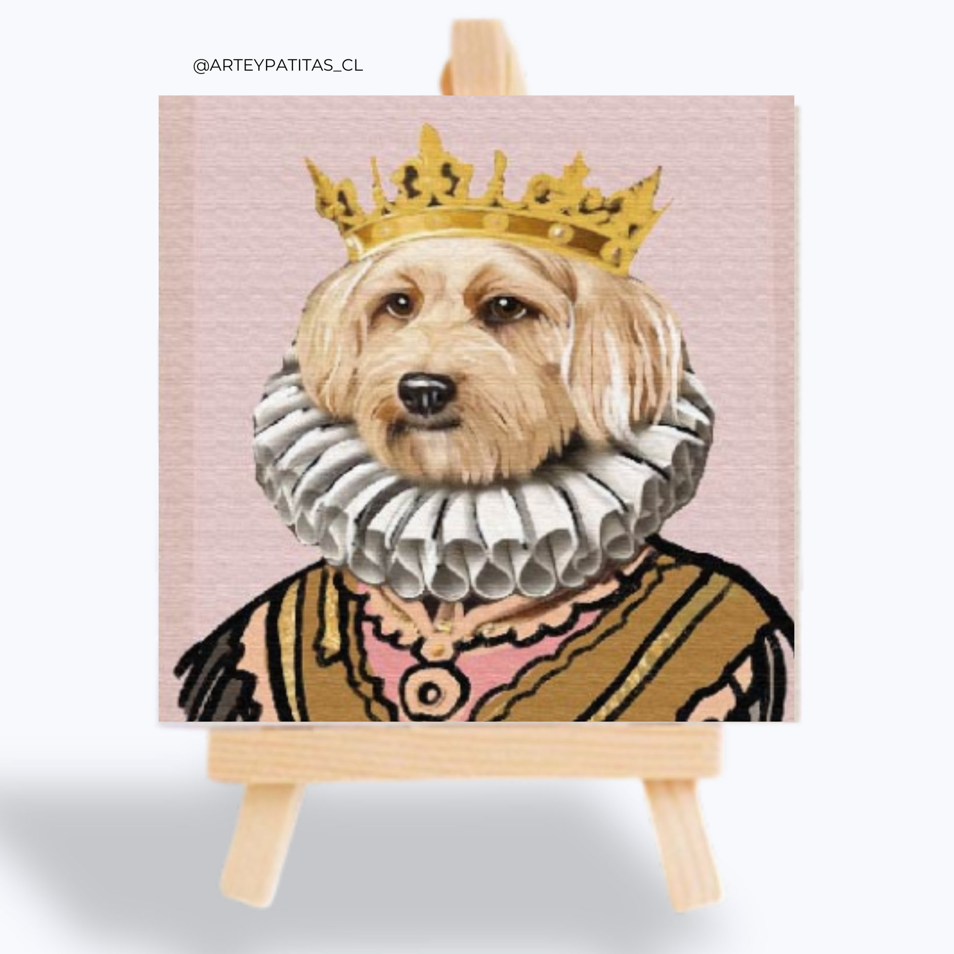 Mini lienzo con retrato personalizado acompañado de su propio caballete! Elije entre un estilo realista o inspirado en la realeza, como rey y reinas.